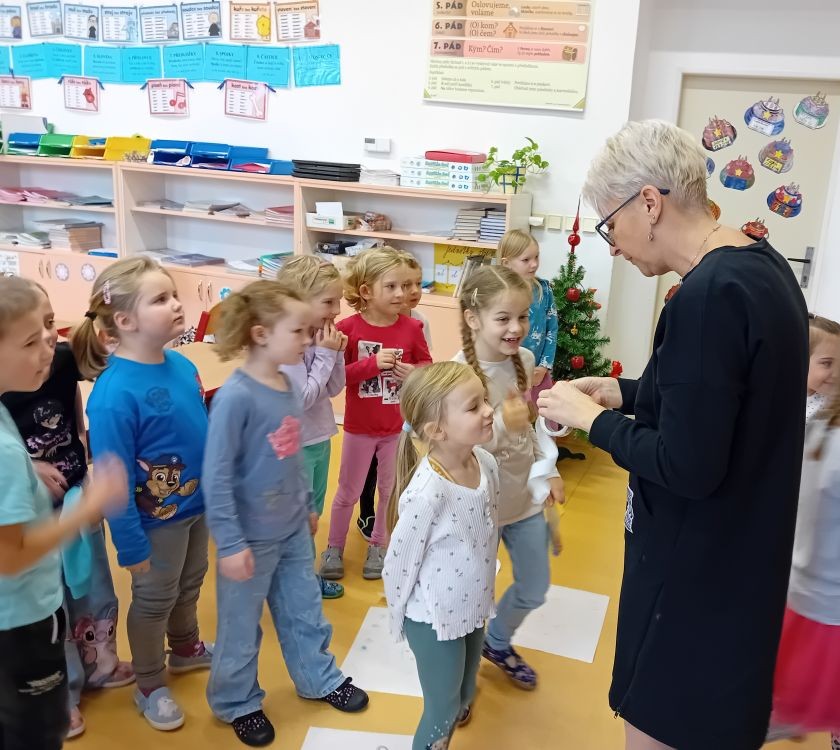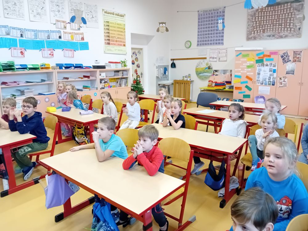 V pondělí 8.12.2025 předškoláci navštívili 1.třídu, kde si prohlídli školní prostředí, vyzkoušeli si práci u lavic a společně s prvňáčky se zapojili do krátkých aktivit. Děti si návštěvu užily a odnesly si nové zážitky i motivaci do budoucí školní docházky.